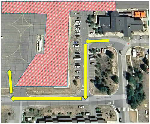 - Construction materials, vehicle and equipment storage will be in the gravel lot west of the Jet Ramp