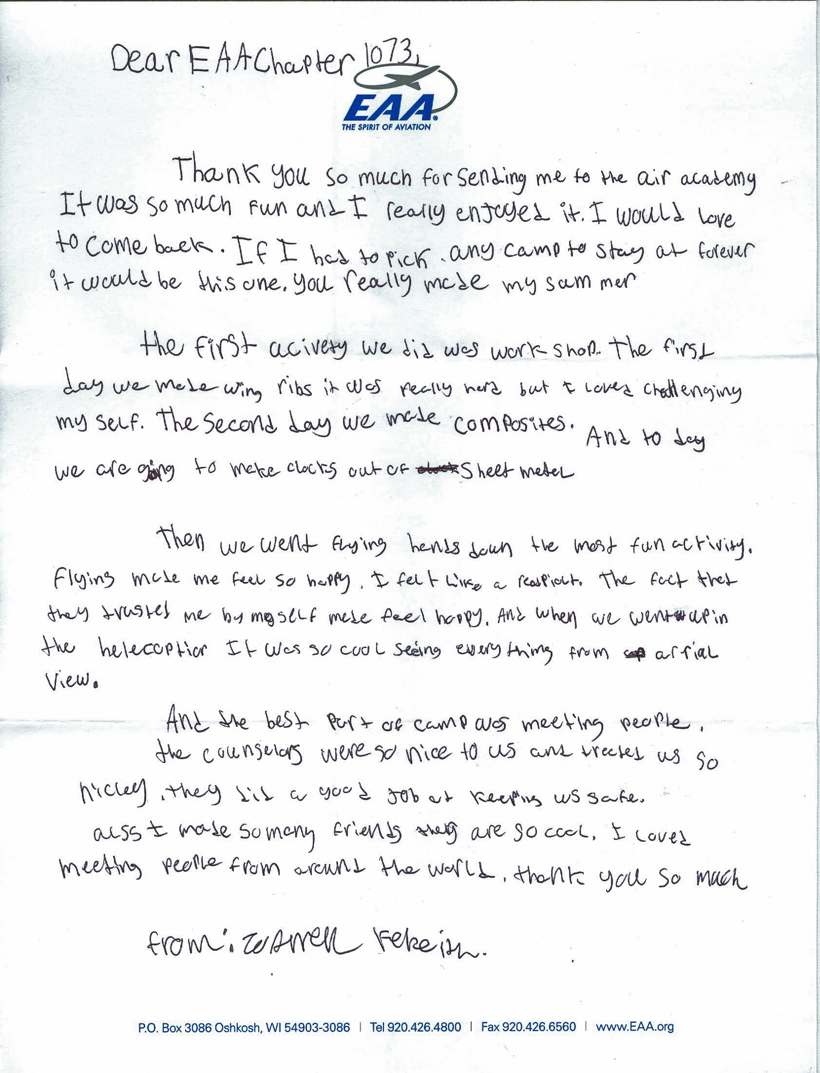 EAA Headquarters - Thank you letter Young Eagle - Thank you letter #1 Young Eagle - Thank you letter #2